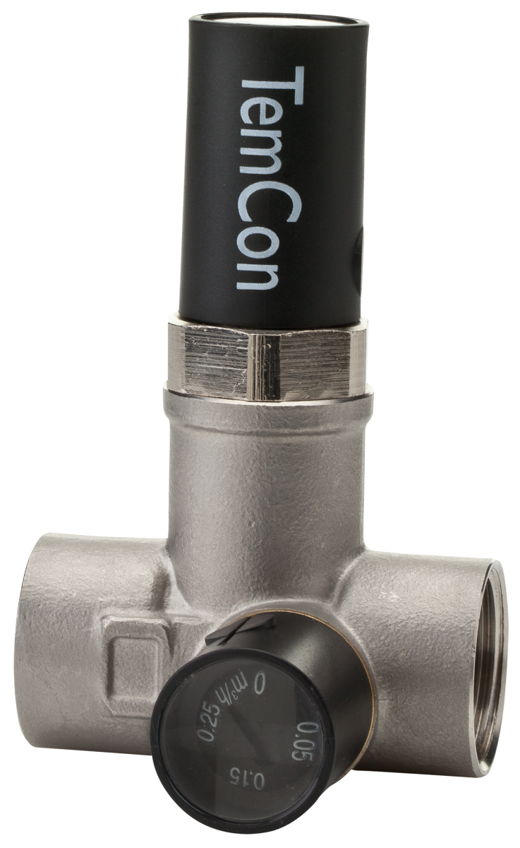 TemCon służy do termicznej regulacji instalacji ciepłej wody użytkowej wyposażonej w przewody cyrkulacyjne. Montowany u podstawy każdego pionu cyrkulacyjnego pozwala na szybkie zapewnienie wody o właściwej temperaturze, w każdym punkcie czerpalnym. Poprzez okresowe wstrzymanie przepływu, pozwala na zmniejszenie strat ciepła i zaoszczędzenie energii potrzebnej do podgrzania wody. TemCon posiada zintegrowany by-pass, który umożliwia przeprowadzenie płukania lub termicznej dezynfekcji instalacji, co pozwala na usunięcie i zapobieżenie rozwojowi bakterii z rodzaju Legionella oraz innych drobnoustrojów.